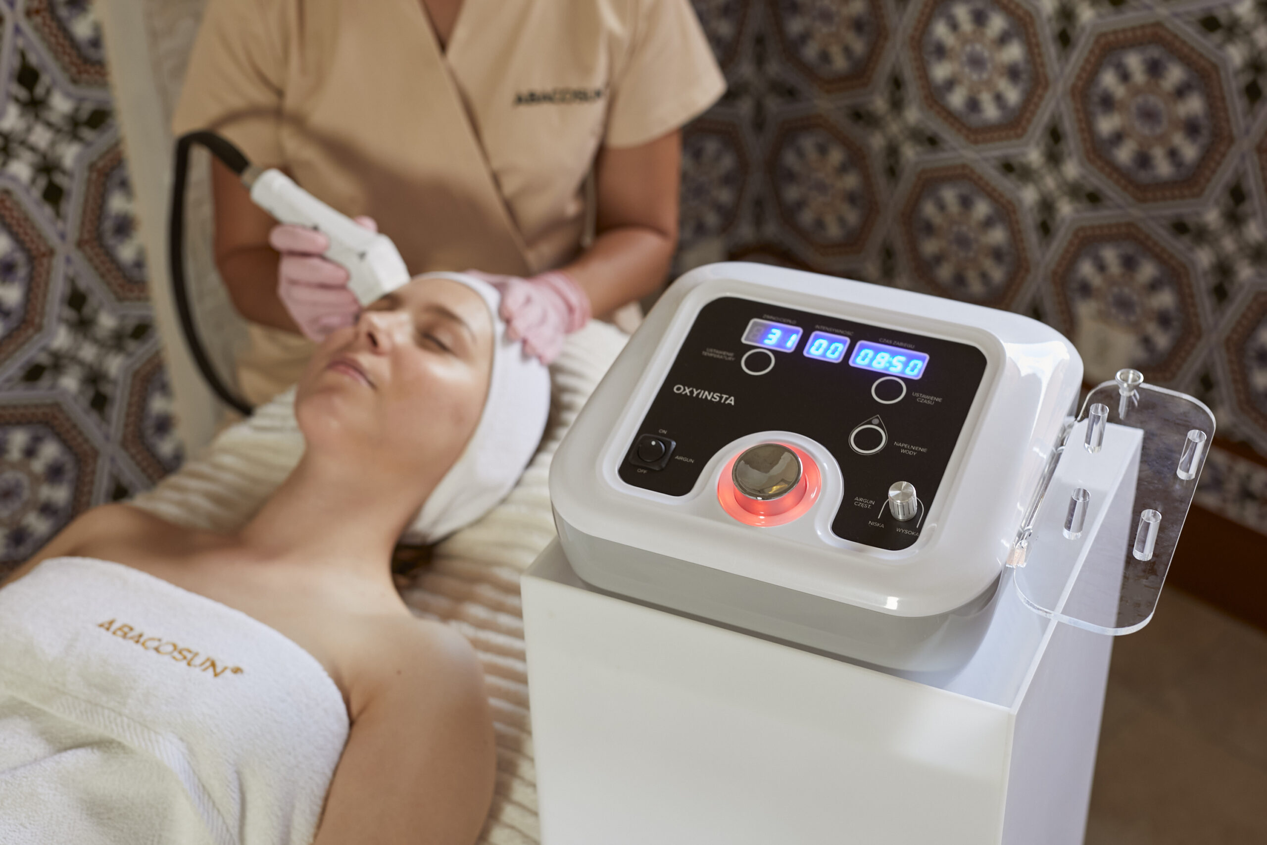 Air boxing/air gun- pulsujący, rytmiczny masaż powietrzem działa drenująco, dotleniająco i rozjaśniająco.